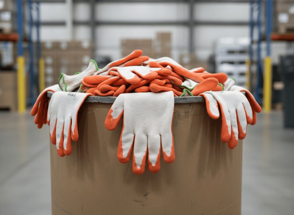 Reusing gloves through a managed cleaning and repair process can significantly reduce disposal volume.
